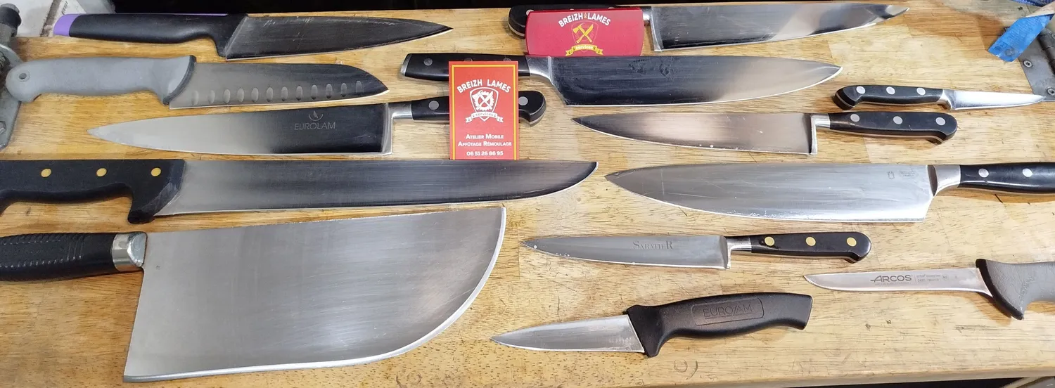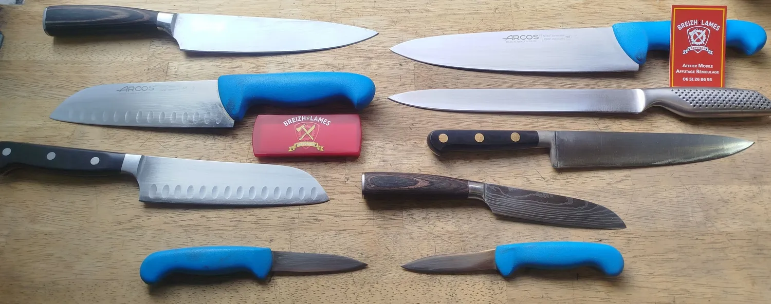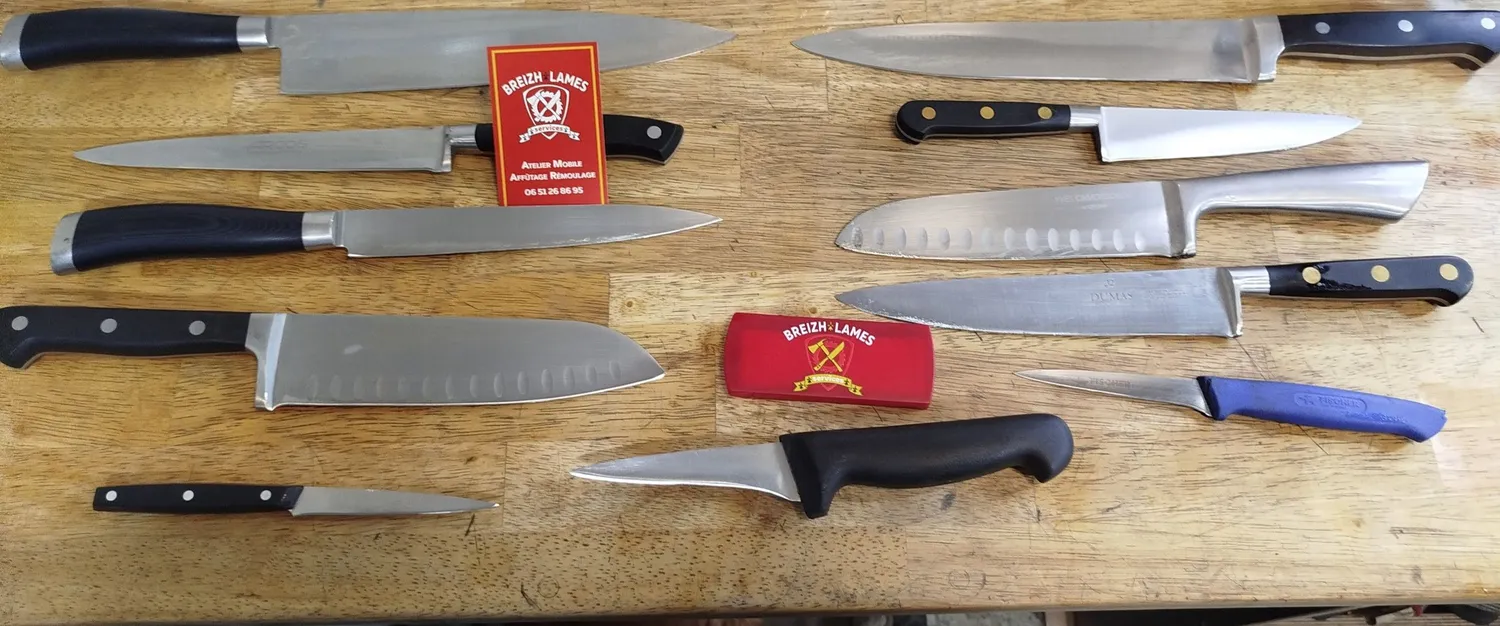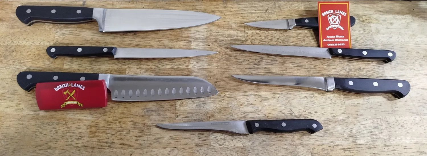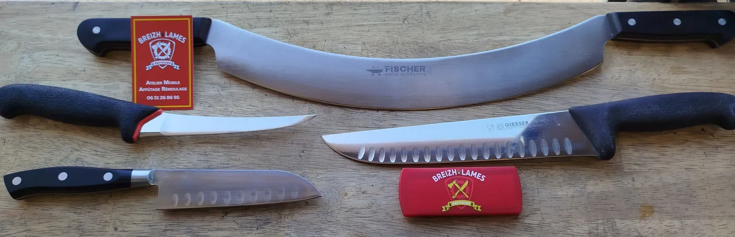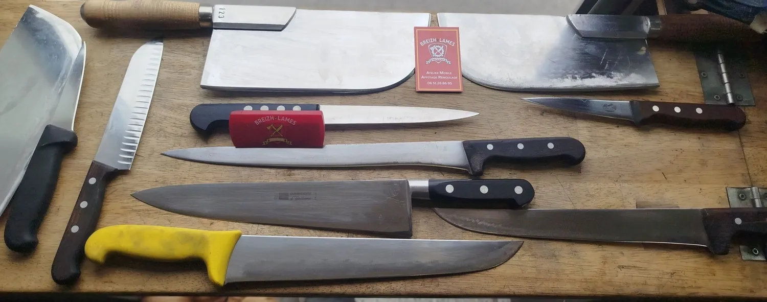 Affûteur rémouleur itinérant à Châteaugiron et alentours. Affûtage de couteaux et outils pour professionnels et particuliers. Devis gratuit.